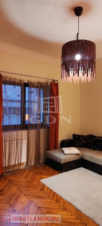 Pécs belvárosában a Mária utcában eladó egy földszinti, 59 m2-es, kertkapcsolatos téglalakás.