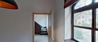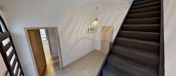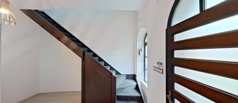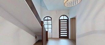 Az ingatlan főbejáratán egy tágas előtérben találjuk magunkat (ez akár váróként is hasznosítható, ha arra szükség lenne). Innen nyílik a földszinti lakrész, valamint egy lépcsőn innen lehet felmenni a felső lakrészbe.