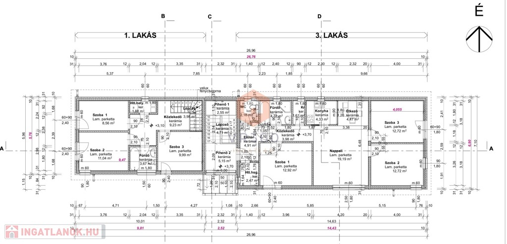 A lakások nappalival, + 3 szobával, modern technikával készülnek.