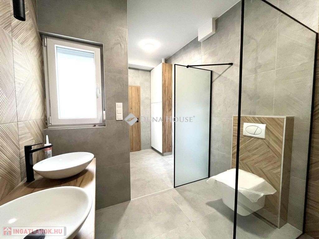 Az ingatlan 50 m2, 2 hálószobás + amerikai - konyha nappalis. A lakás felújítása az ingatlan minden részét érinti. Az aljzat szigetelve és betonozva lett, amibe elhelyezésre került a padlófűtés. Az három rétegű nyílászárók redőnnyel és szúnyoghálóval ellátott.