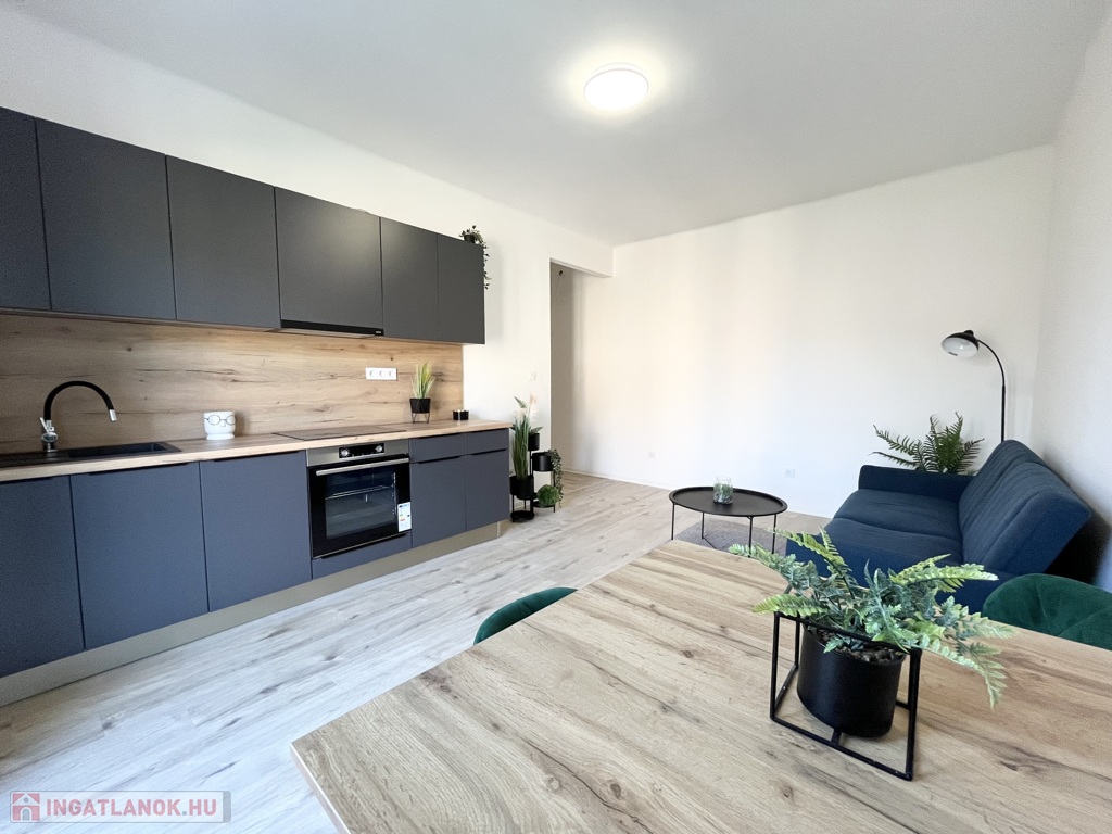 Az ingatlan amerikai konyha–étkező–nappali elrendezésű, modern és elegáns megjelenésű. A teljeskörűen gépesített, prémium konyha és az igényes belső kialakítás kompromisszummentes komfortot biztosít.