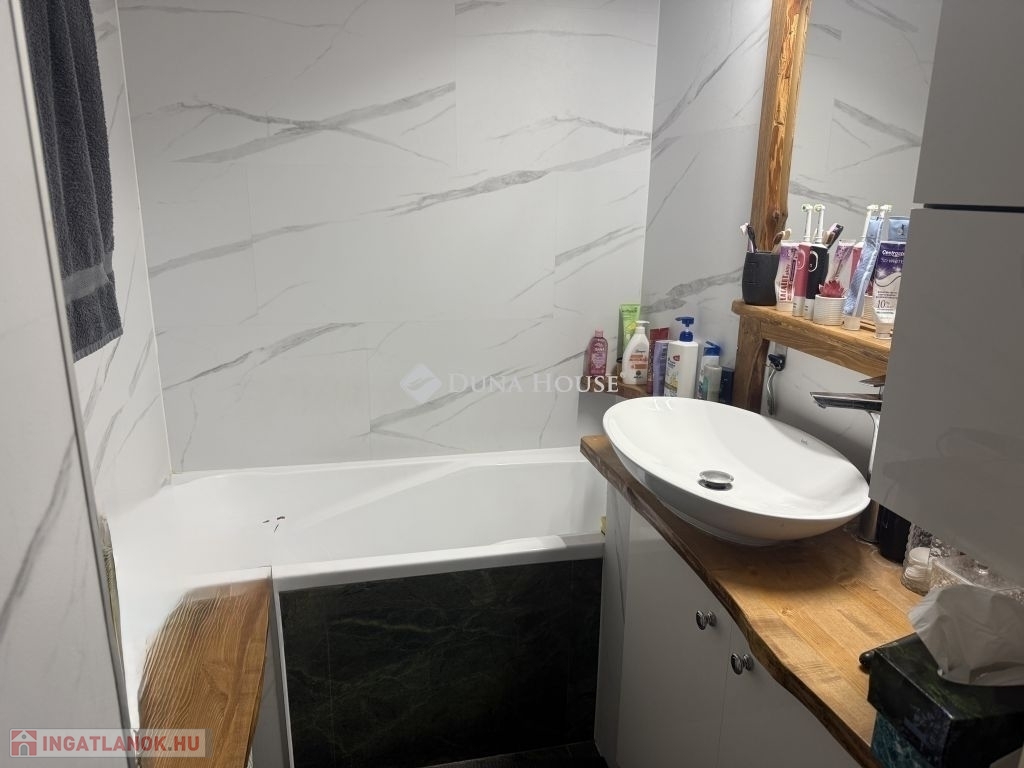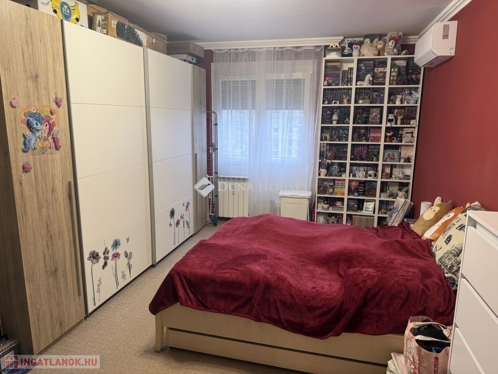 Eladó Pécsett-Rózsadombon a Fagyöngy u-ban egy 3. emeleti, 74nm-es, erkélyes, (3,5 szobás átalakított) 3 külön nyíló szobás panel lakás.A lakás teljesen felújított észak-déli tájolású.A konyha és a félszoba közötti válaszfal bontását követően egy nagy, 16 m2- es konyha - étkező lett kialakítva, modern bútorral, indukciós főzőlap + sütő és mosogatógép is van.Az épület szigetelt, műanyag nyílászárókkal ellátott. Fűtése távfűtés költségmegosztóval. Elrendezése kiváló nagy előszoba beépített szekrénnyel. A fürdő teljes körű felújításon esett át a megszokott egy csaptelep mellé beépítésre került egy kádtöltő zuhany váltós csaptelep is. Műanyag bejárati ajtó lett beépítve valamint a beltéri ajtók is cserélve lettek. A folyosón a konyhában étkezőben vinyl padló van. Szobában az eredeti laminált padlóra padlószőnyeg került. Minden ablakon redőny és szúnyogháló van. Az erkély tavasszal lett felújítva. Új szúnyoghálós redőny és padlóburkolat került ide is. Minden szobába és az étkezőbe tavasszal prémium kategóriás huzatmentes klíma lett telepítve.Az alagsorban van egy 2 lakás által használt nagy tároló is.Az ingatlan közelében buszmegálló (50m), bolt, posta, iskola, óvoda, orvosi rendelő, gyógyszertár található. A berendezési tárgyak alku tárgyát képezik.Amennyiben felkeltette érdeklődését, keressen bizalommal!