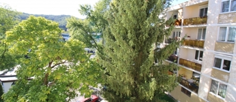 Az erkély a Kórház irányába néz, a lakás DNY-i fekvésű. Jó környék, jó szomszédok, a Megyei Kórház és a Rendelőintézet közelében.