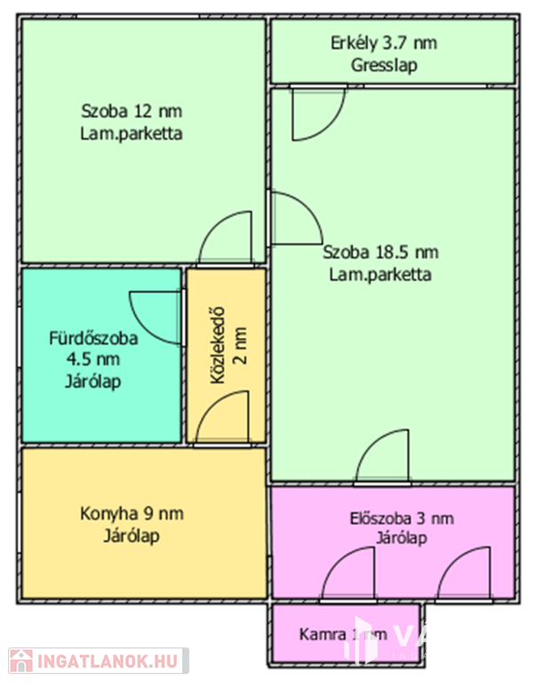 Helyiségei: 2 szoba, konyha, kamra, előszoba, fürdőszoba, közlekedő, erkély.