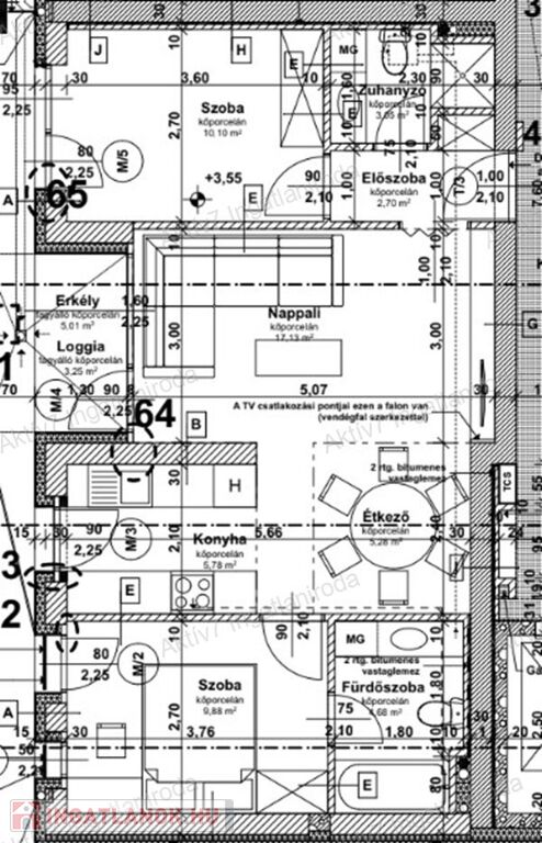 A szóban forgó lakás első emeleti, 58,60 m2 területű, amerikai konyha nappali +2 hálószobás duplakomfortos, a hozzá tartozó 8,26 m2 terasszal (a fotók között található alaprajz szerint).