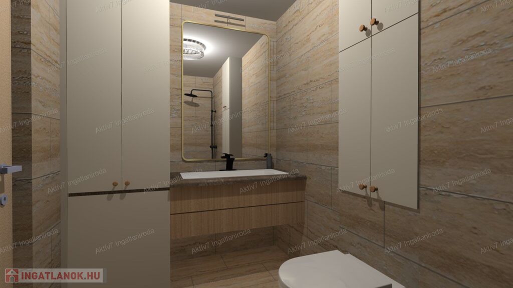 Teljesen készen van, burkolva, festve, elektromos redőnnyel, beltéri ajtókkal, szaniterekkel felszerelve kínáljuk. A vételár a konyhaszekrényt NEM tartalmazza.
