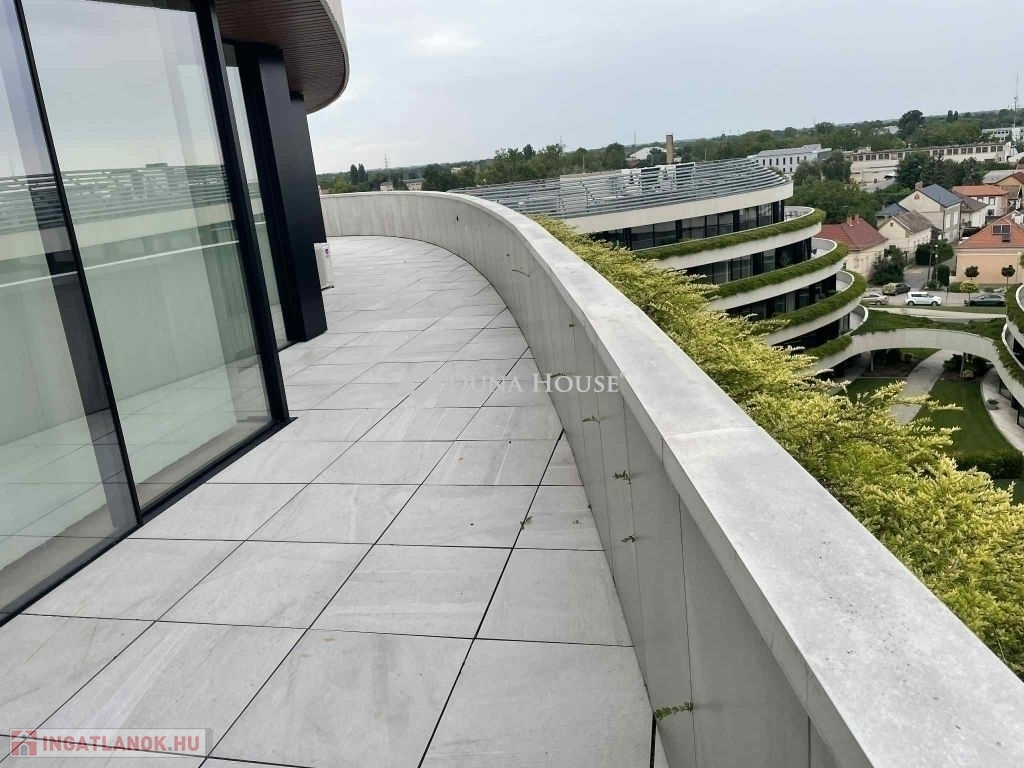 Exkluzív lehetőség Szeged egyik legkülönlegesebb lakóparkjában: a 6. emeleten eladó egy 99 m²-es, teljesen bútorozott penthouse lakás, melyhez 96 m²-es, panorámás terasz tartozik!
