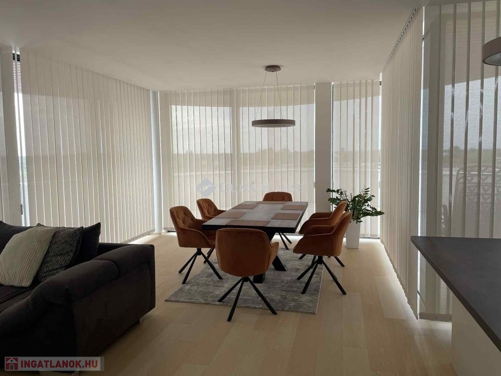 A lakás tágas nagy terekkel rendelkezik, a térhatást tovább növeli, a terasz felől lévő hatalmas, teljes falas üvegfelület.