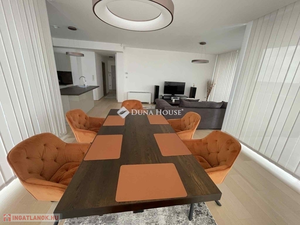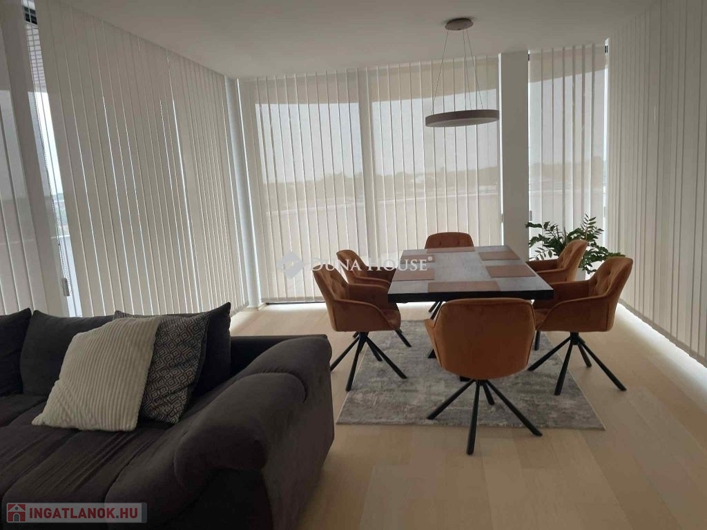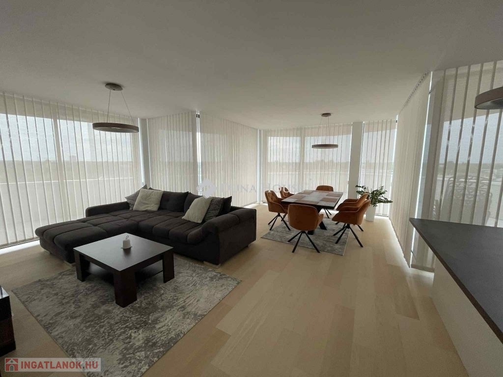 Szeged-Belváros Cédrus Liget lakóparkban Bara Ákos tervei alapján készült modern, nemzetközi szintű épületegyüttesben berendezett, 99,0 m2-es amerikai konyha+nappali+étkező, 2 szobás, 2 fürdőszobás ( a háló külön fürdőszobás) , nagy teraszos 6. emeleti PENTHOUSE lakás liftes házban eladó.