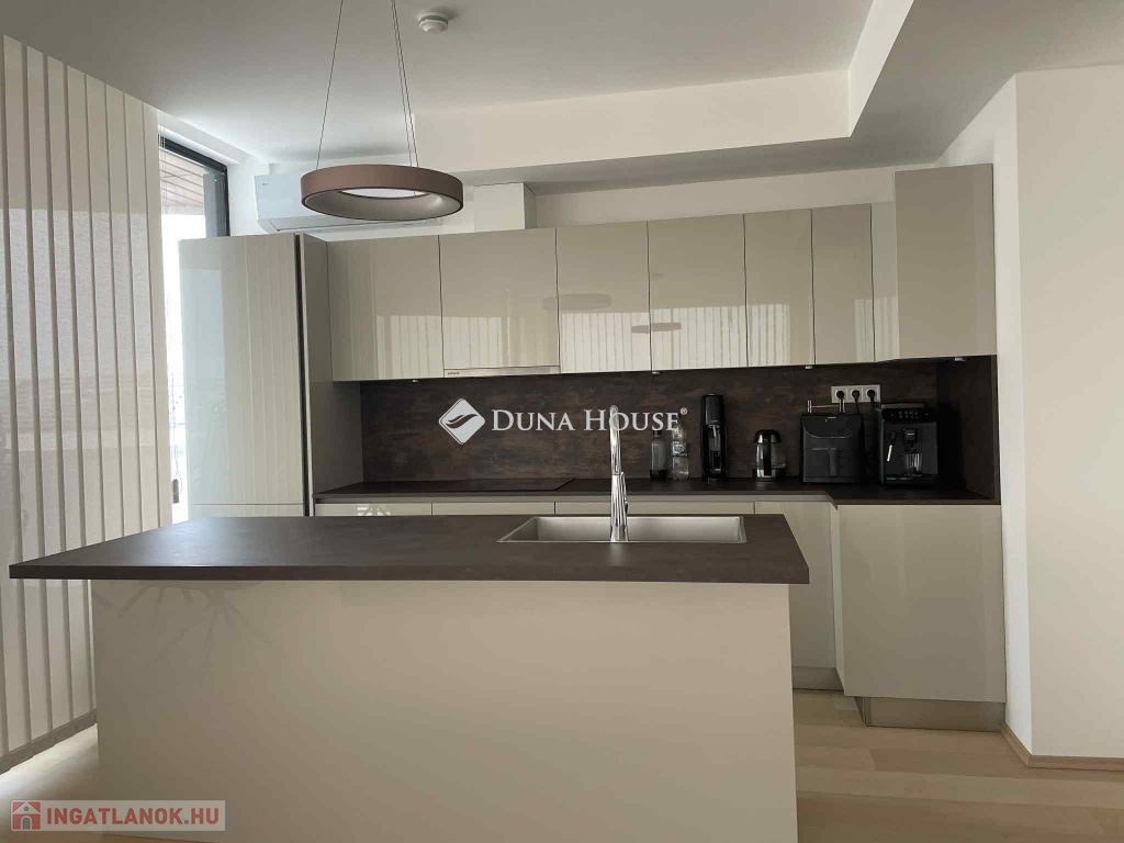 A nappali tágas, világos, egy légtérben található az amerikai konyhával, étkezővel. A konyha gépesített, tűzhely, sütő, szagelszívó és mosogatógép is beépítésre került.