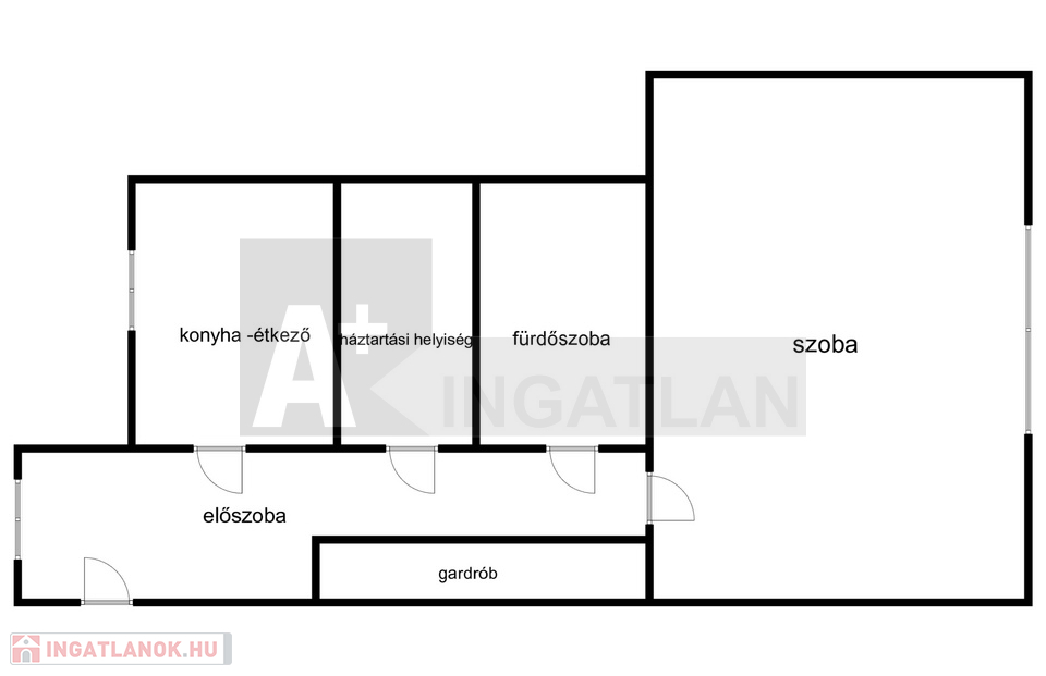 Elrendezését tekintve : konyha-étkező . előszoba/közlekedő , mosókonyha/háztartási helyiség , fürdőszoba-wc-vel és az igazán tágas , napfényes , gyönyörű parkettás szoba .