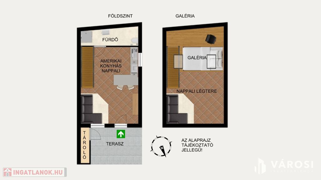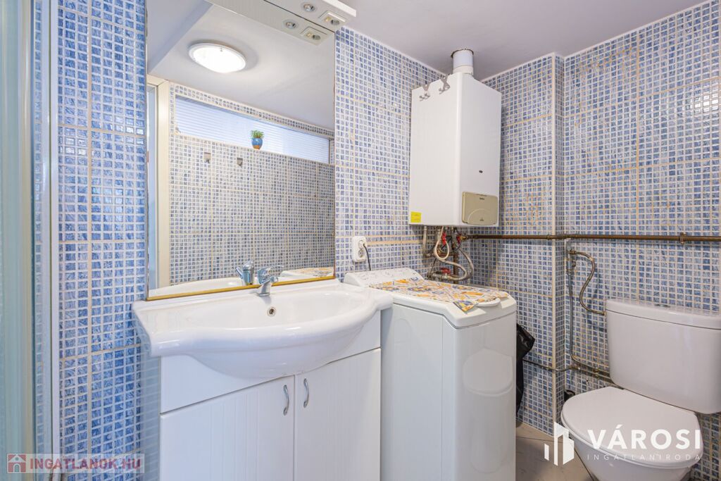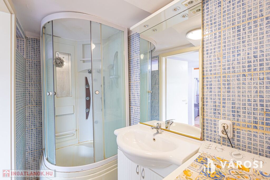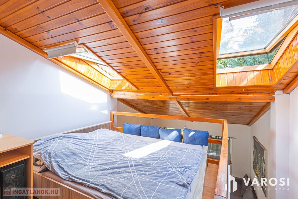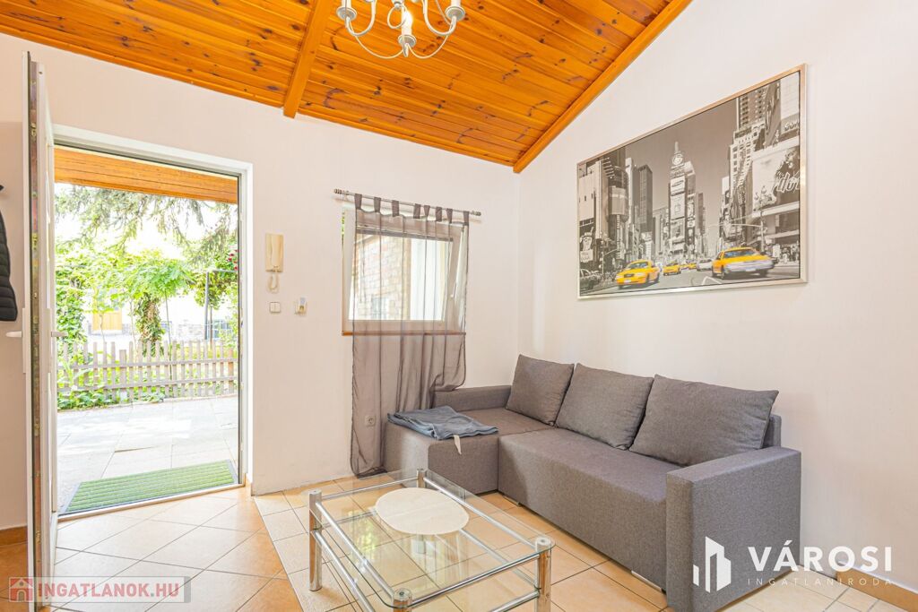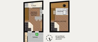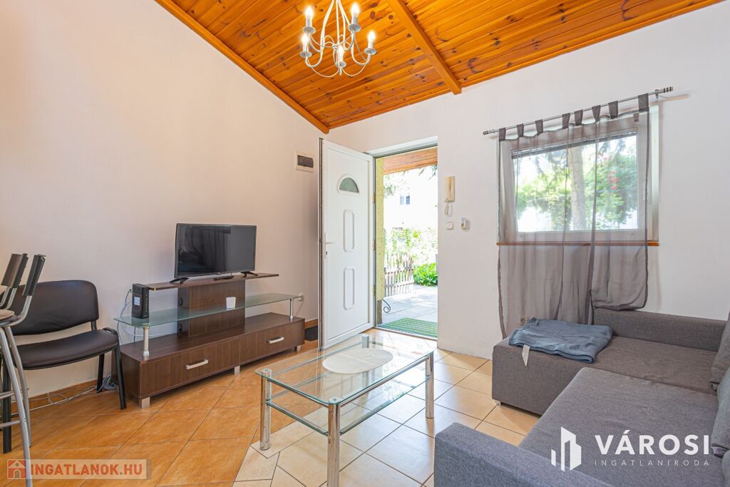 33 négyzetméteres alapterületén a bejárat irányába lejtő tetőszerkezet egy külön hálógaléria kialakítását tette lehetővé, az elrendezést a mellékelt alaprajz mutatja. Fűtése kombikazánról üzemel, padlófűtéssel, hűtését 5 hónapja felszerelt inverteres klíma végzi.