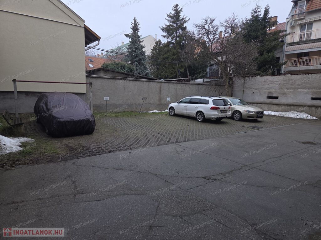 A társasház rendezett, a  lakáshoz tartozik a társasház zárt udvarában egy autóbeálló, valamint az alagsorban egy közel 7 m2 területű privát használatú zárható  tároló, amely kiváló tárolási lehetőséget biztosít.