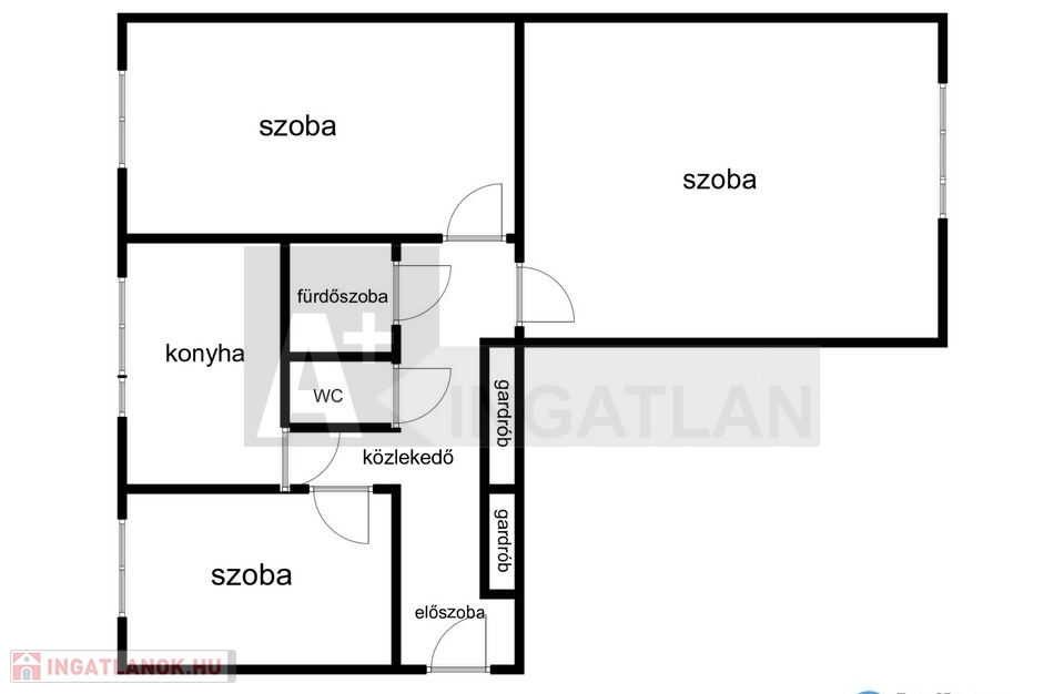 Elrendezését tekintve : 3 külön nyíló szoba , előszoba és közlekedő ,praktikus gardrób szekrényekkel,