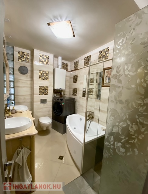 2db fürdőszoba: a 15nm-es szobához tartozik egy 2,25nm-es zuhanyzó mosdóval, plusz egy külön 6,2nm zuhanyzóval, káddal, és mosdóval felszerelt.