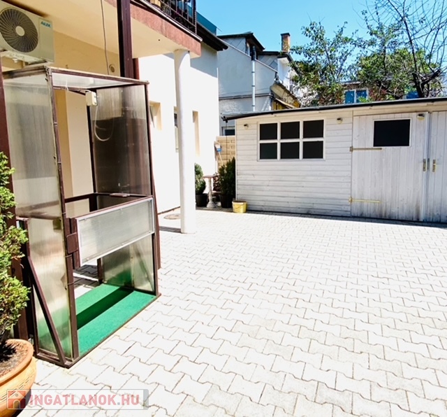 A lakáshoz tartozik egy díszburkolatos zárt kocsi beálló, egy napozó terasz, 8nm zárható kerti faház és egy nagy teherbírású lift is.