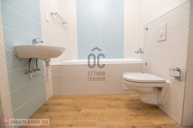 A padlóburkolat vízálló laminált padlót, a fürdőszoba járólapos burkolatot kapott.