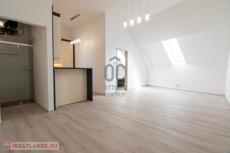 A tetőtéri lakás a maga 344 centiméteres belmagasságával igazán tágas és világos, impozáns látványt nyújt.
