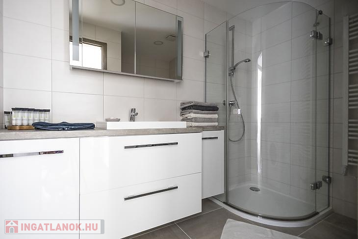 A lakás amerikai konyhás nappaliból, két hálószobából, fürdőszobából és külön WC-ből áll, a kényelmet mennyezeti hűtés-fűtés biztosítja. A tágas erkélyről csodálatos panoráma nyílik a Balatonra.