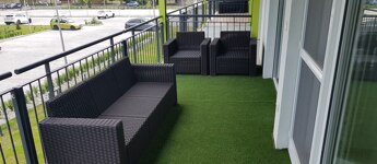A lakáshoz egy 12,5 m²-es, tágas terasz tartozik, amely alkalmas étkezésre, és felejthetetlen élményt nyújt reggeli kávézáskor vagy esti kikapcsolódáshoz.