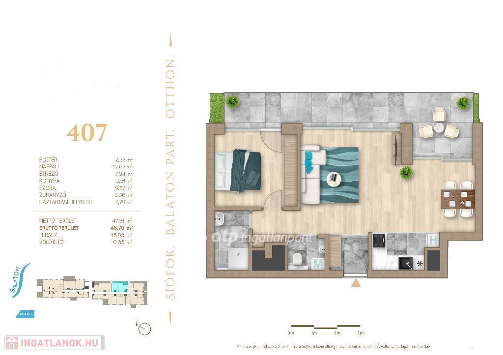A 4. emelet 407-es lakás helyiségei részletesen: