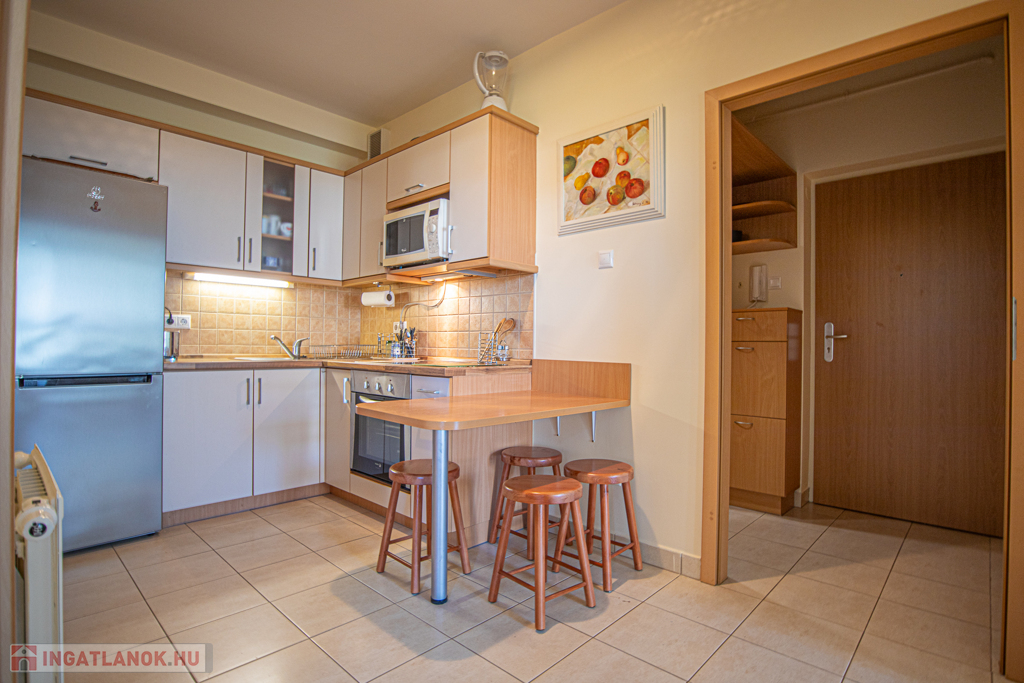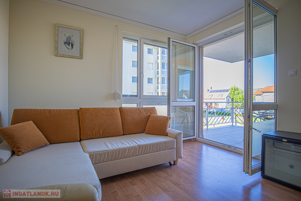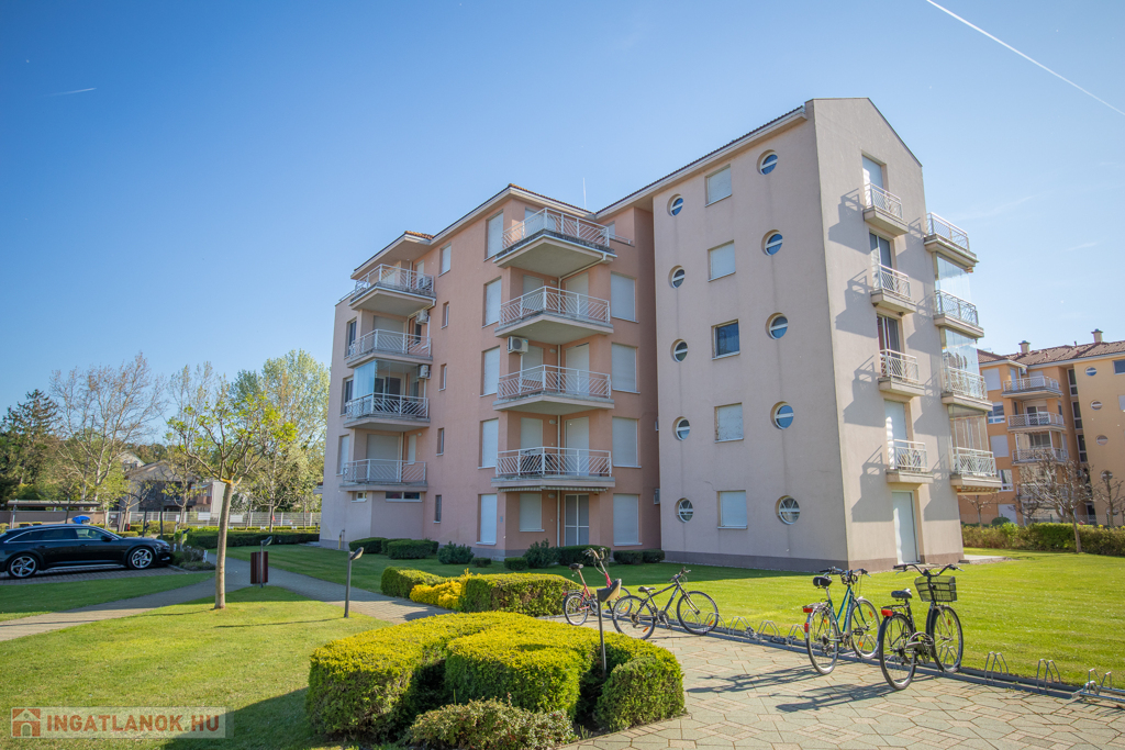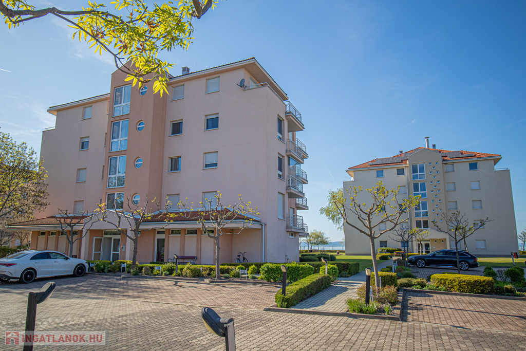 Eladó egy 50 m²-es, kétszobás, nagy teraszos, klímás lakás a siófoki Aranyparton, közvetlenül a vízparton, egy 2006-ban épült, liftes társasház 1.emeletén. A tágas teraszról balatoni panoráma tárul elénk. A lakóparkból közvetlen kijárat nyílik az aranyparti szabadstrandra.