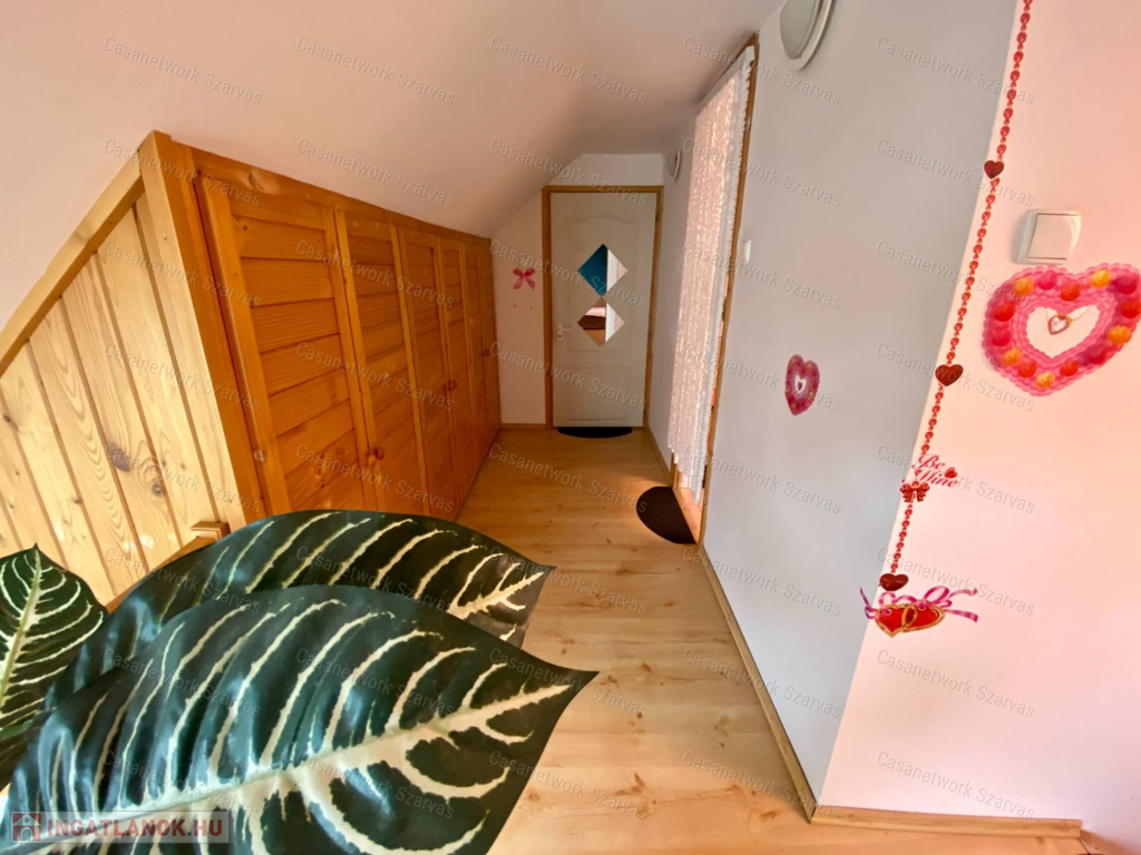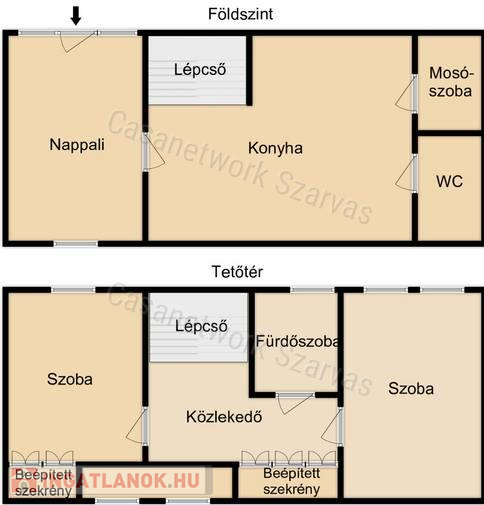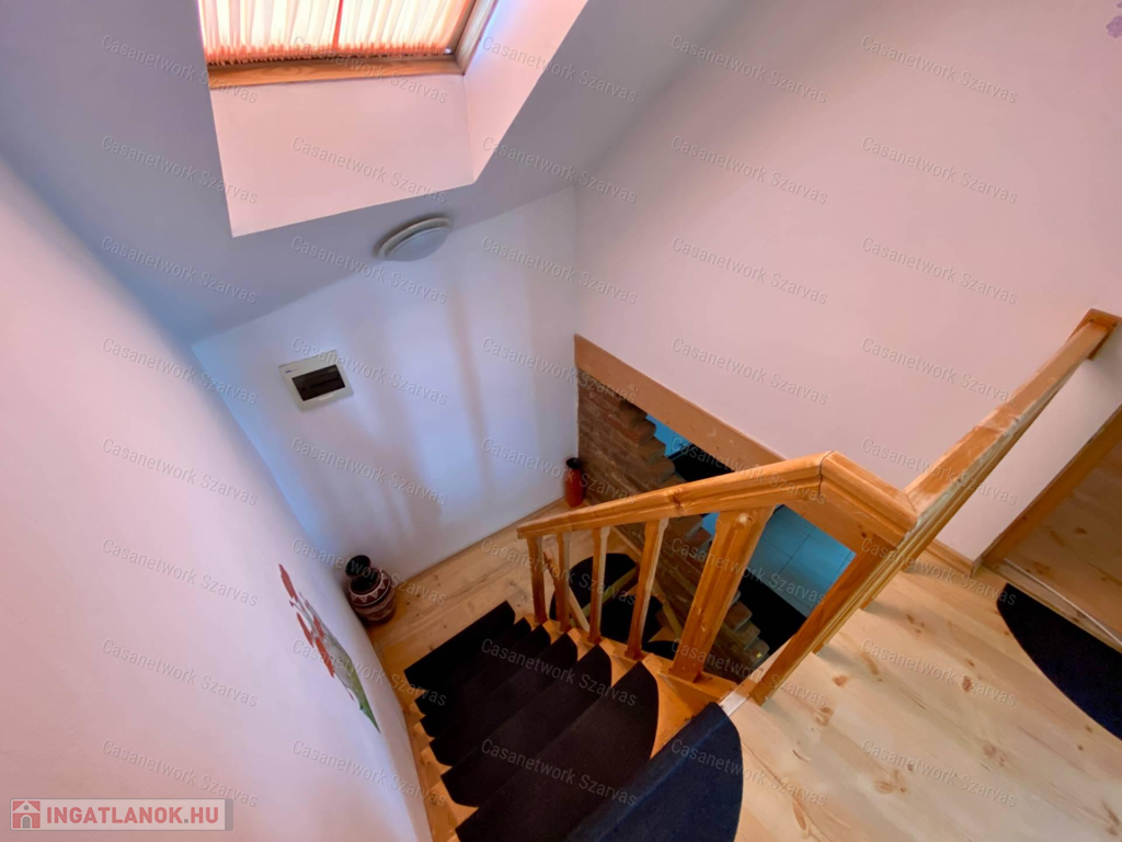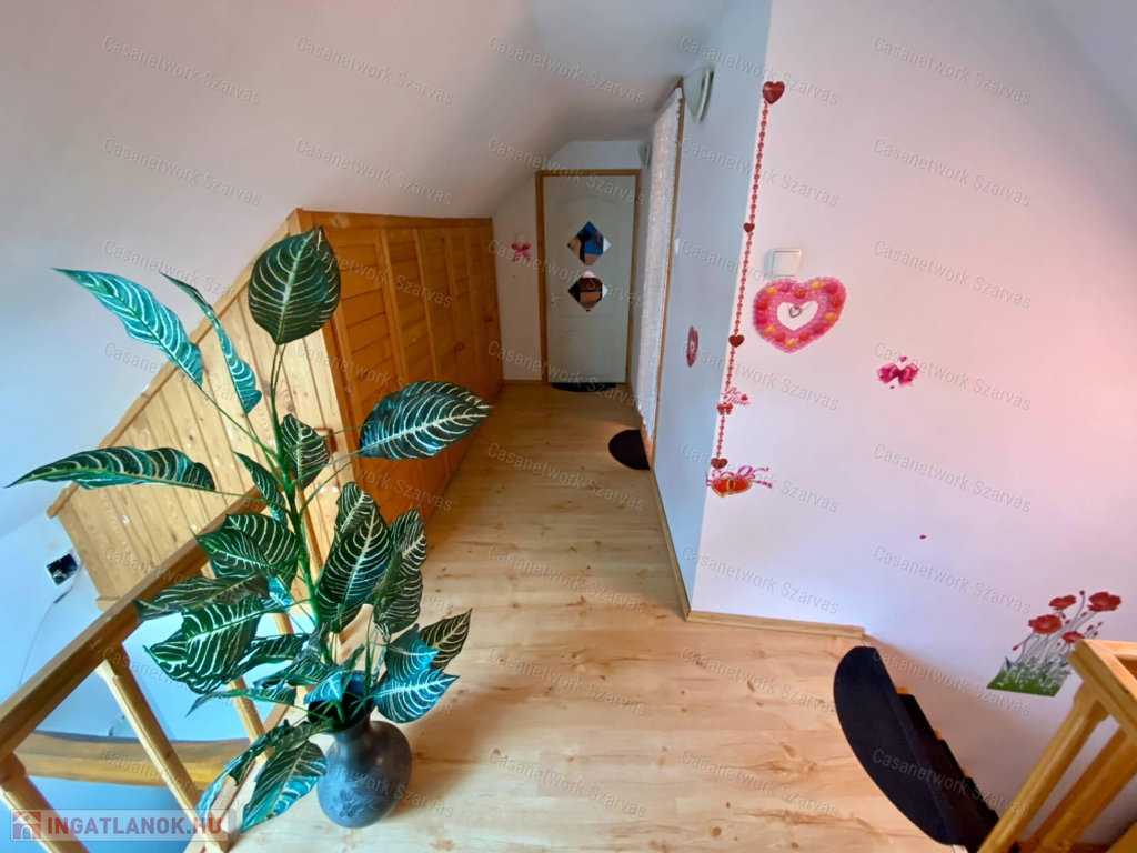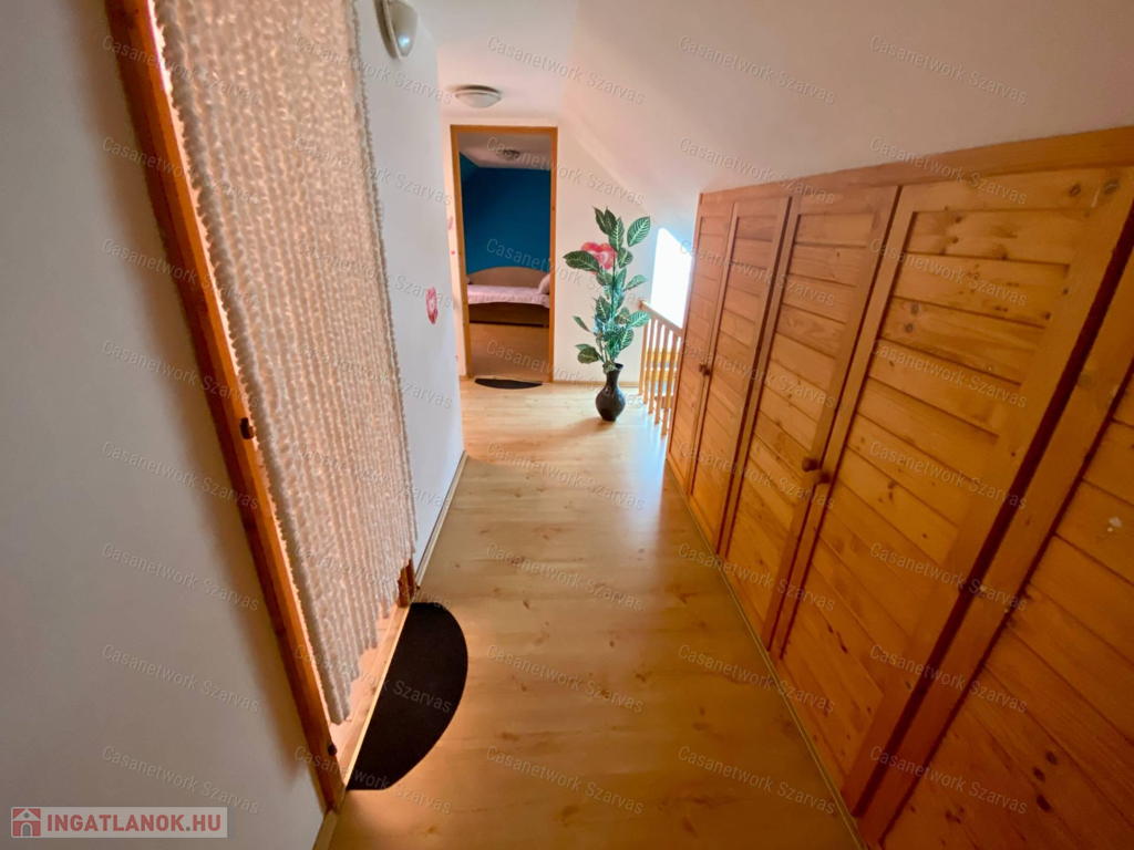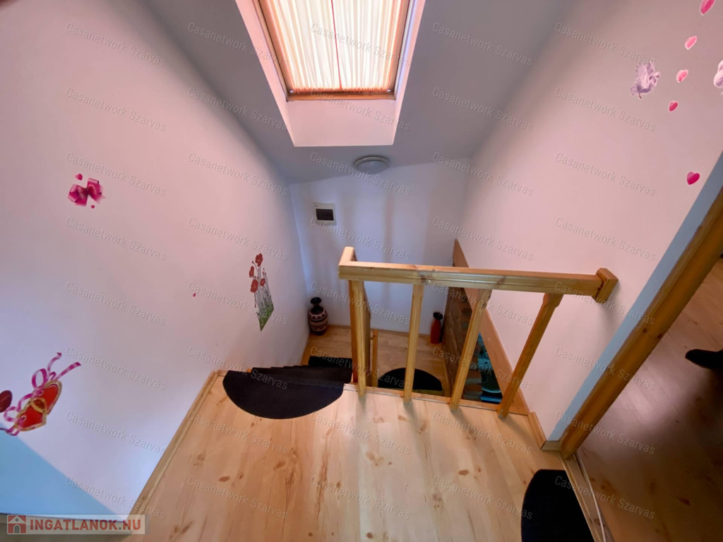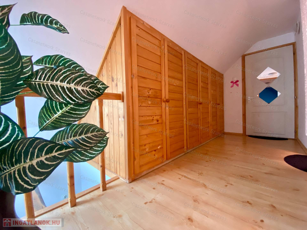 - az ingatlan földszintjén nappali, konyha, illemhelyiség, mosószoba, lépcső; tetőterén közlekedő, 2 szoba, 2 beépített szekrény, fürdőszoba illemhelyiséggel lett kialakítva