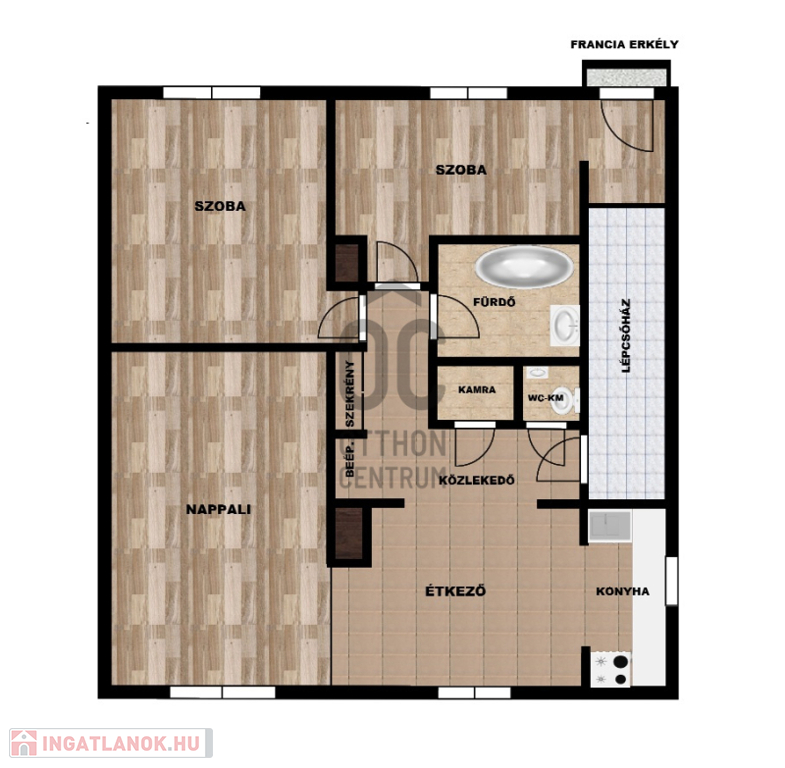 - padlóburkolat fa parketta a szobákban, a többi helységben járólap