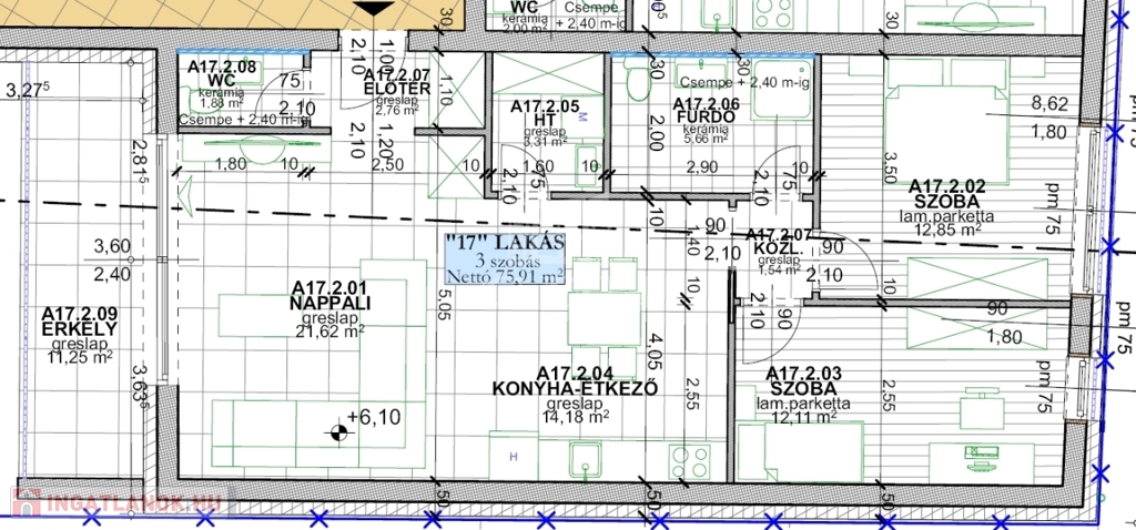 A17. lakás: 75,91nm