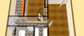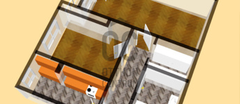 A szobákban fa parketta található, a többi helyiségben PVC burkolat.