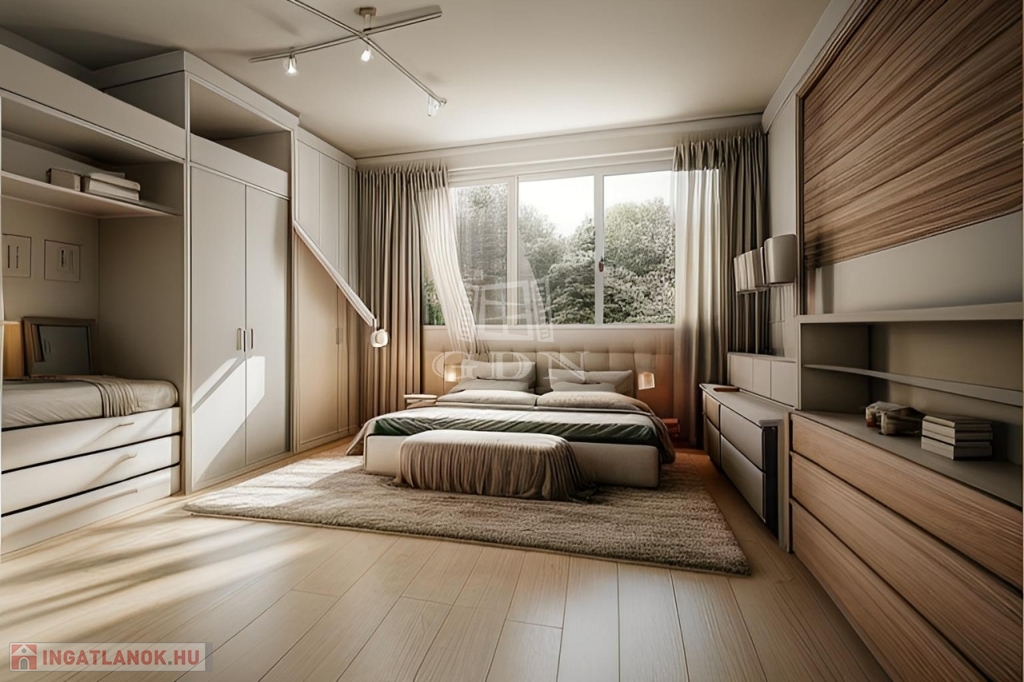 Belvárosi elhelyezkedésű, egybefüggő tetőtéri ingatlan eladó, amelyből két önálló, jól használható lakás alakítható ki.