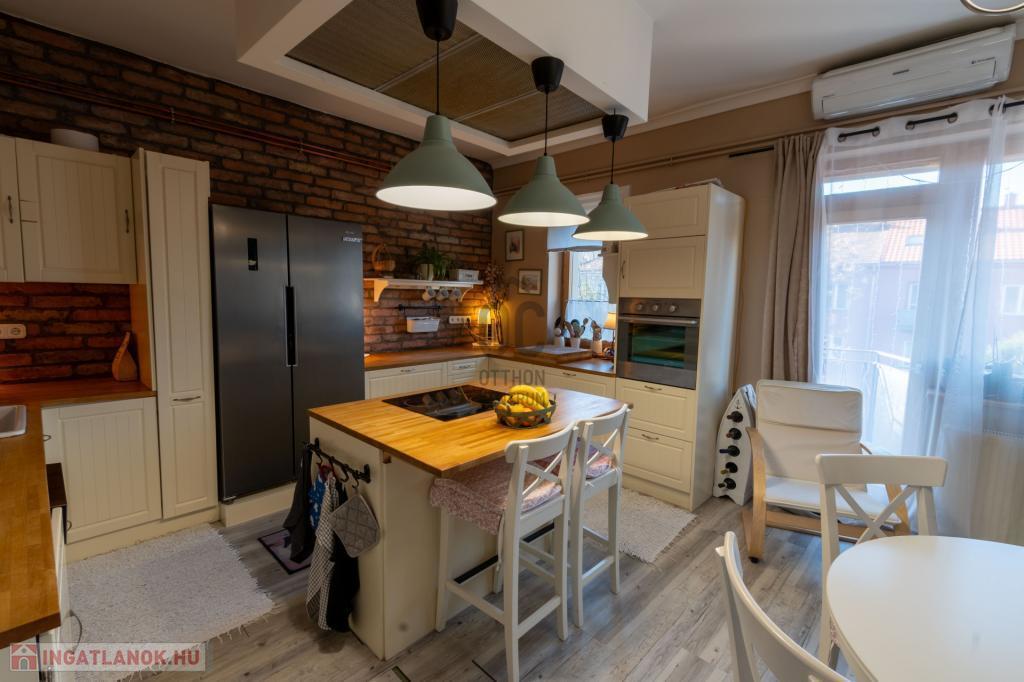 Eladásra kínálunk Székesfehérváron, a Prohászka Ottokár úton egy 75 nm-es (bruttó 90nm), négy szobás, amerikai konyhás, DNY-i tájolású, felújított, tégla építésű lakást.