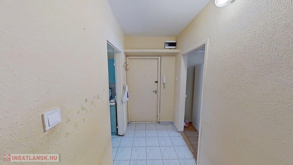 A lakásban nagyméretű előszoba, nagy világos nappali, és a nagyobb panellakásokhoz passzoló méretű fürdő és konyha/étkező található.