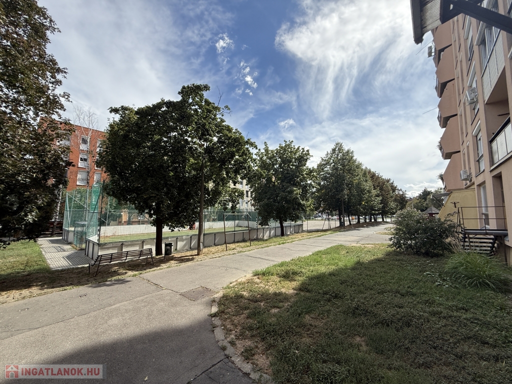 A környék kultúrált, parkosított, nagy, árnyékot adó fákkal, valamint nem messze van egy új sportpálya és játszótér. A közelben vannak a nagyobb boltok, közvetlen közelében van a buszmegálló, parkolni pedig közvetlenül a ház előtt lehet.