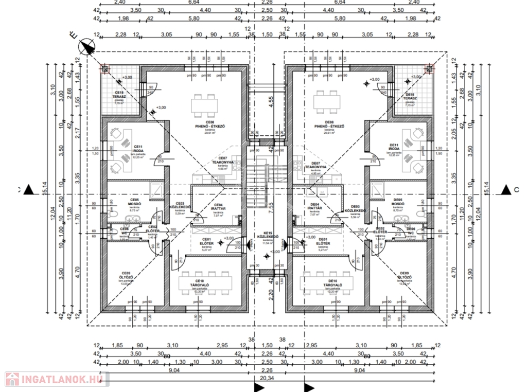 C jelű emeleti iroda 7,12 m2 terasszal 103,67 m2 hasznos térrel: 76.200.000 ft