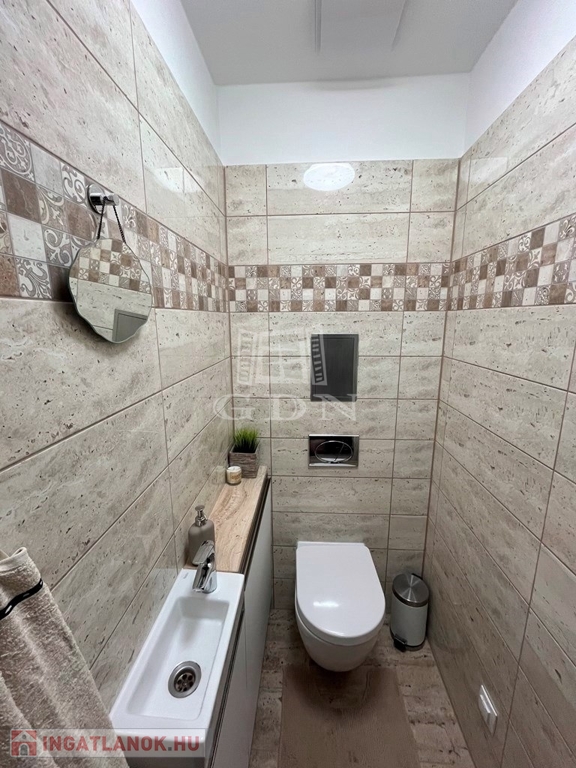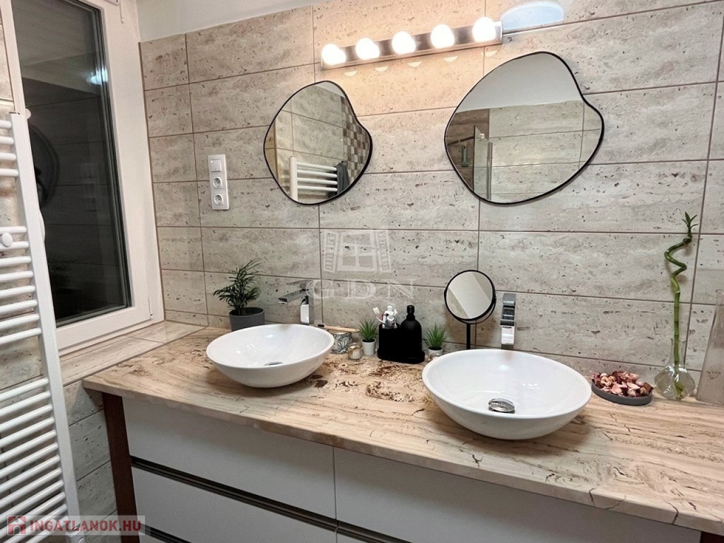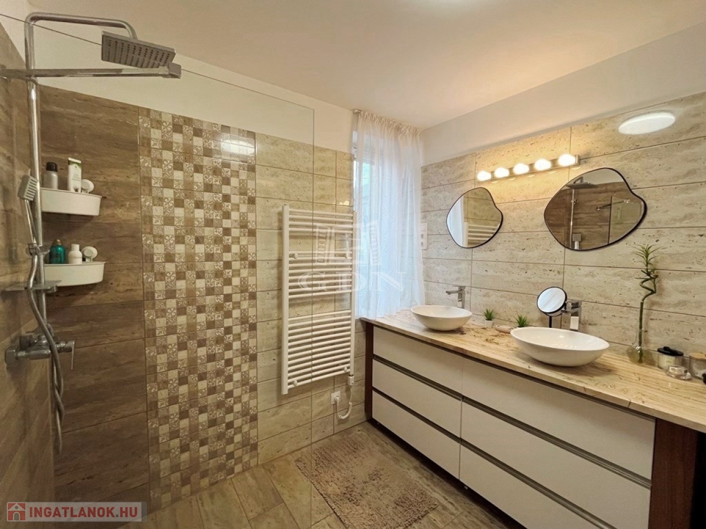A fürdőszobában és a WC-ben padlófűtés, valamint elektromos törölközőszárító növeli a komfortérzetet.