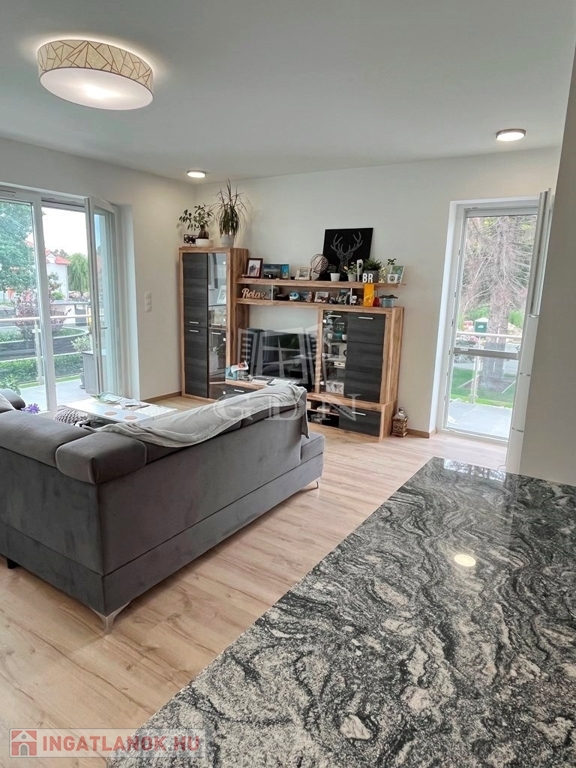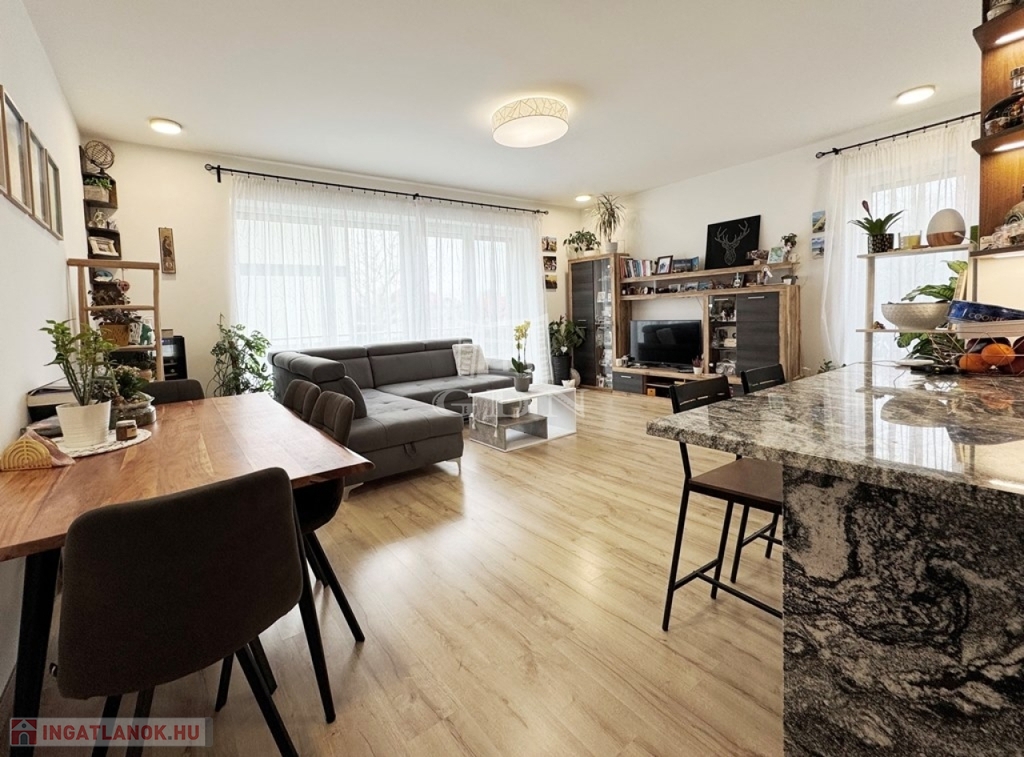 Szigetszentmiklóson, a buszmegállótól mindössze 2 perc sétára, exkluzív, zárt lakóparkban, liftes épület első emeletén eladó egy DNY fekvésű, kiváló beosztású, 74 m² nettó (93 m² bruttó) lakóterületű, újszerű összkomfortos lakás.