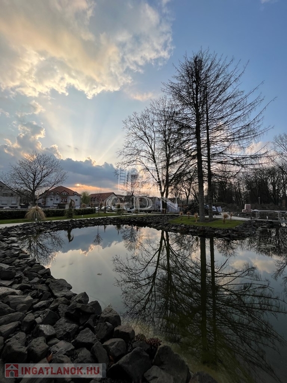 A zárt lakópark központi eleme egy sétánnyal körülvett, hangulatvilágítással megvilágított tó, amely kellemes kikapcsolódást nyújt a lakók számára.