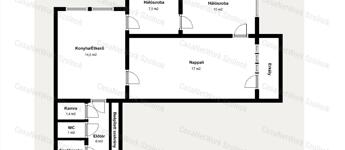 - rendelkezésre álló helyiségek: tágas előtér, beépített gardróbszekrénnyel, kádas fürdőszoba, külön helyiségben illemhely, étkezős konyha, nappali, két hálószoba