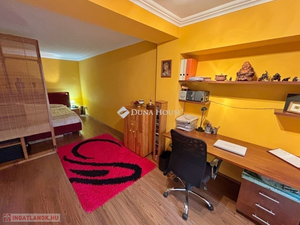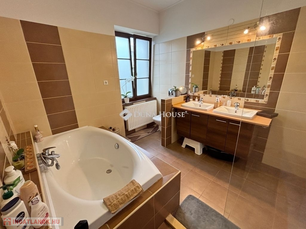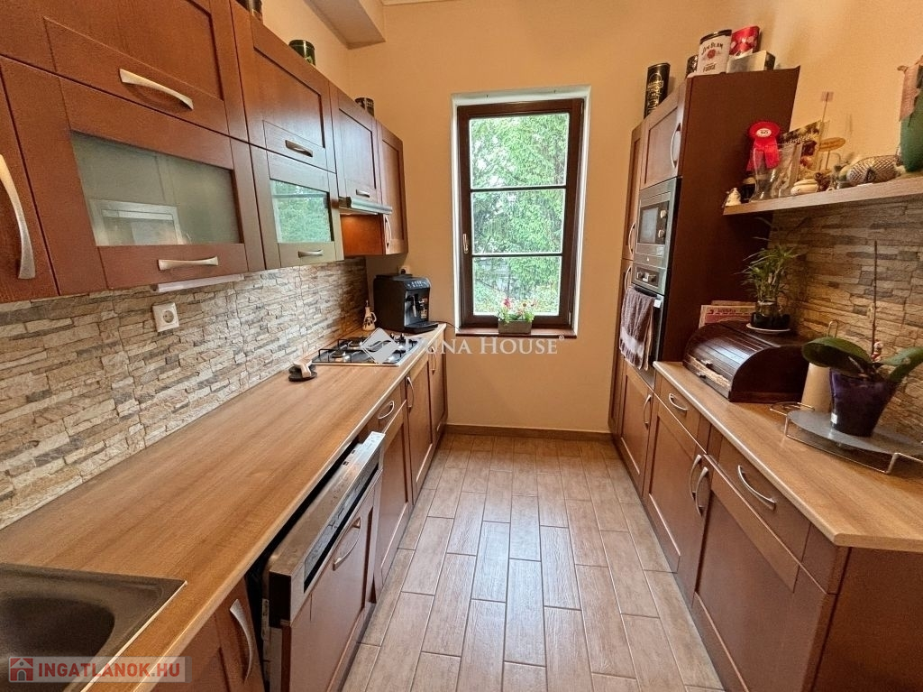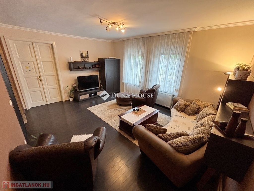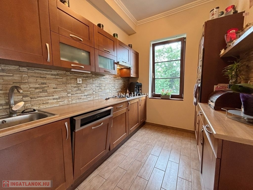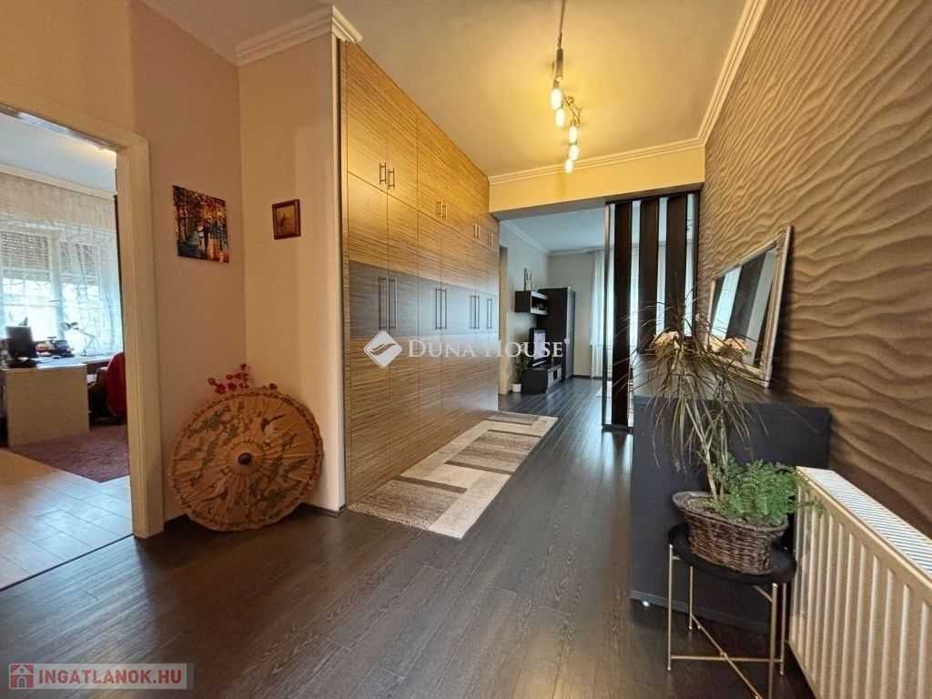 Az egyedi kialakítású lakás, a polgári stílust modern megjelenéssel ötvözi. Három oldalra (D-NY-É) tájolt, minden helyisége ablakos, napfényes ... A lakás tejleskörű műszaki és esztétikai felújítása 2008-ban készült el. A 143 m2-en előtér, hall, nappali, három hálószoba, konyha, étkező, fürdő-wc, közlekedő, és egy külön wc van kialakítva, ezeken kívül egy 9,5 m2 alapterületű részben fedett terasz, a madárcsicsergős belső kertre tájolva. Az ingatlan, méreteihez képest meglepően alacsony fenntartási költségekkel üzemel. Fűtését cirkó gázkazán biztosítja, radiátoros hőleadással, termosztát vezérléssel. Tartozik a lakáshoz egy 5 m2 alapterületű saját pince is. Az épület bejárata előtt parkolók vannak kialakítva.