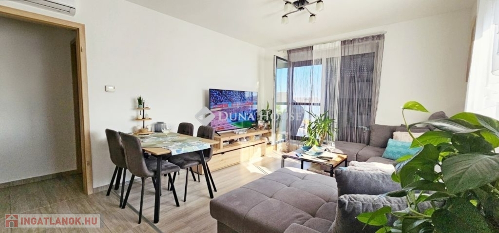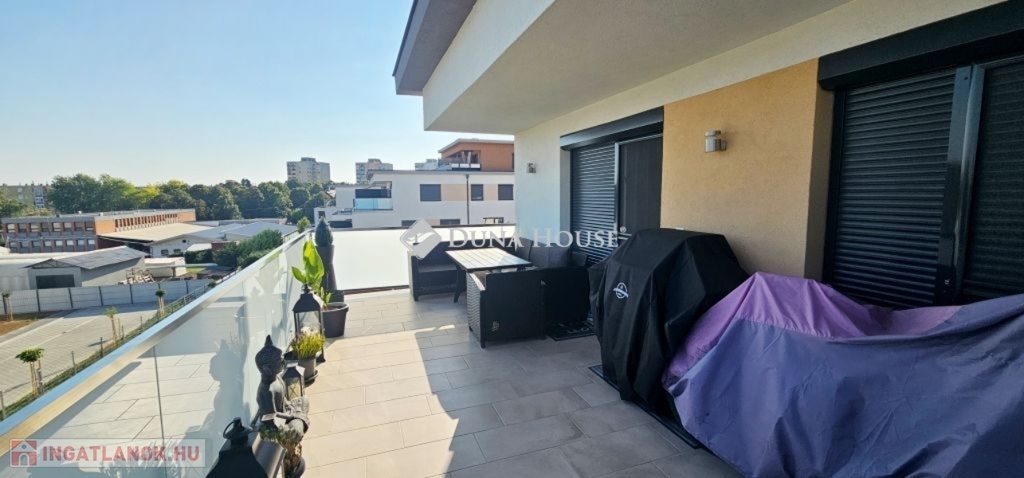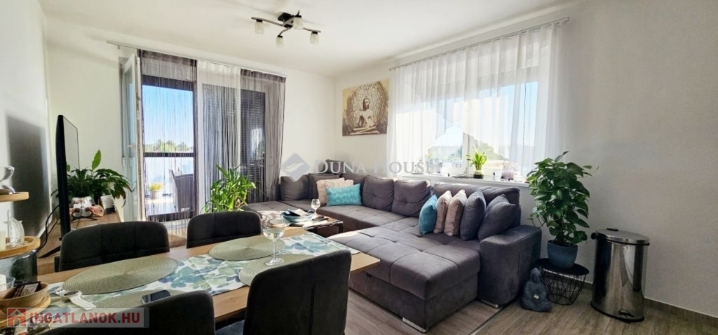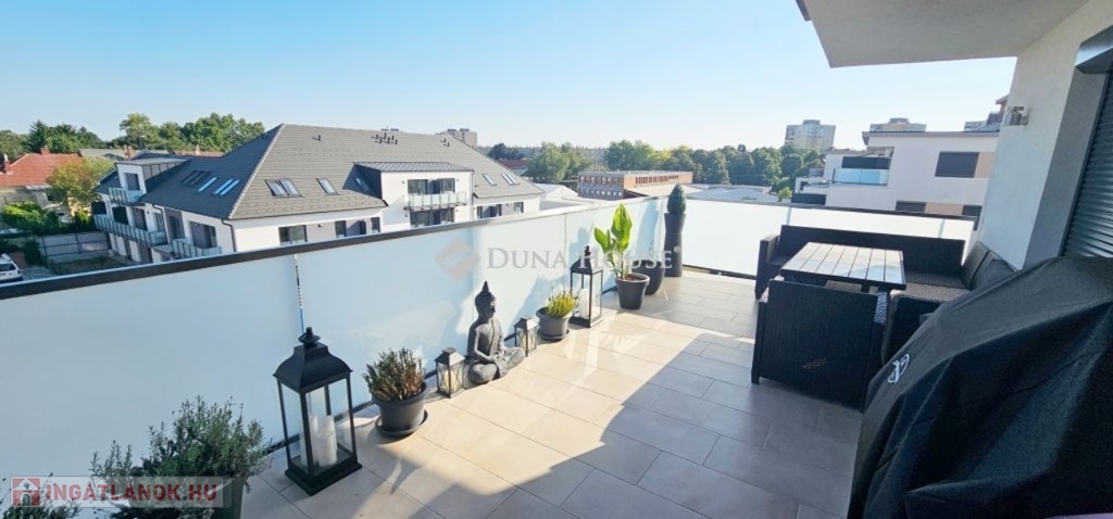 A nappalihoz kapcsolódik egy déli tájolású 22 m2-es félig fedett terasz, ahol elegendő hely van még a grillezéshez is. Az ingatlanban a nappalin kívül 2 nyugati és egy déli fekvésű hálószoba található, a fürdőszoba és a wc külön helyiségben van, a fürdőbe tusoló lett beépítve.
