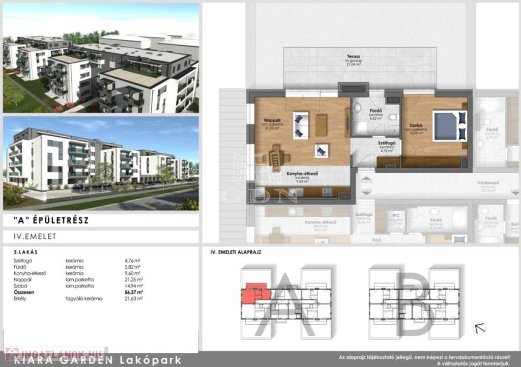 Szombathely zöldövezeti, dinamikusan fejlődő városrészén, energiahatékony, modern lakások várják új tulajdonosaikat. Kiara Garden lakóparkban kettő ütemben épülő , minden igényt kielégítő lakásai nappali+1 szobával, nappali+2 szobával, nappali+ 3 szobával fognak rendelkezni. Az ingatlanokhoz nagy erkélyek teraszok is tartoznak. A legnagyobb lakás dupla komfortos kialakítású lesz. Egyedülállóktól a nagy családosokig megfelelő otthona lehet bárkinek. A belváros közeli ingatlanok lehetőséget biztosítanak egyedi belső kialakításokra. A lakás gazdaságos fűtéséről és melegvíz ellátásáról távhő szolgáltató gondoskodik. A fűtésrendszer egyedileg szabályozható, saját hőmennyiség mérővel ellátott. A hőleadás padlófűtésen keresztül történik. Az ingatlanok ideális hőmérsékletét, a nappaliban elhelyezett split klíma biztosítja. Az épületben kellő számú zárható tároló kerül kialakításra, külön bejárattal. ( 2.96 m2-es tároló 1 790 000 Ft ) Természetesen vannak nagyobb tárolók is. A lakótömbök udvarán található felszíni parkolók ára 1 490 000 Ft. Bővebb tájékoztatásért kérem vegye fel velem a kapcsolatot.