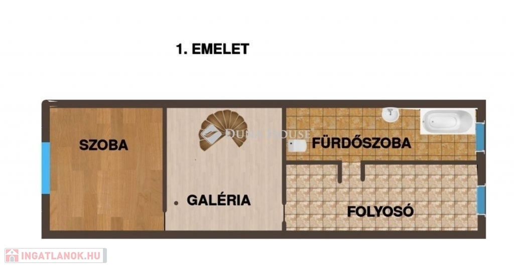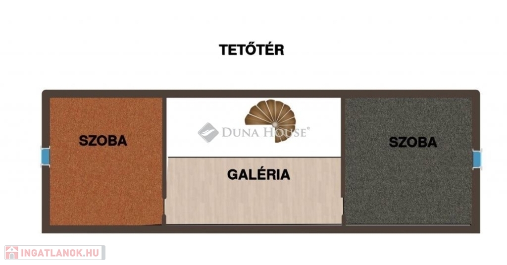 Kialakítás: belső lépcsős, 2 szint + tetőtér