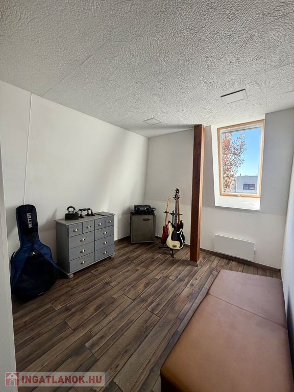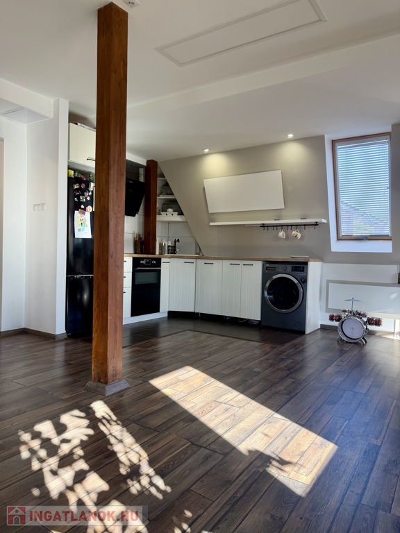 Az ingatlan egy 2020-ban átadott, mindössze négy lakásos, családi ház jellegű társasház első emeletén található. Az épület kialakítása és hangulata miatt inkább egy nyugodt családi ház érzetét kelti, semmint egy klasszikus társasházét.