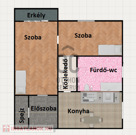 Az ingatlanban található két tágas szoba és egy fürdőszoba,konyha és egy spejz is amelyek kényelmesen elhelyezkednek, lehetővé teszik a nyugodt mindennapokat, míg az erkély, amely 5 négyzetméter nagyságú, remek helyszínt biztosít a reggeli kávézáshoz vagy a pihenéshez a friss levegőn.