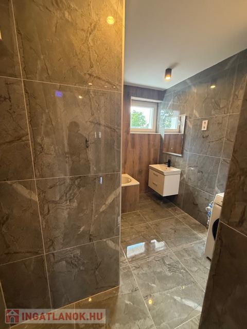 A 20 éves Dot-Ing Ingatlaniroda eladásra kínál Tatabányán frissen, és teljeskörűen felújított két szoba+nappalival rendelkező téglalakást. Az ingatlan felújítása folyamatban van, mind műszakilag, mind esztétikailag felújításra kerül, elegáns, minimál stílusban kialakítva. Teljes víz és villanyvezeték csere történt, központi fűtéssel, új radiátorokkal. Az ingatlanban minden helyiségben padlófűtés van, helyiségenként termosztáttal szabályozható. Az amerikai konyhás nappali praktikus kialakítású, minimál stílusú konyhabútor került beépítésre sütővel, főzőlappal, páraelszívóval, mosogatógéppel, gránit mosogatótálcával, hűtővel és természetesen minden új és prémium minőségű. A felújítás során szinte minden fejlesztésre került, az összes helyiségben burkolatcsere, a szobákban laminált parketta, a fürdőben, konyhában, és a folyosókon igényes hidegburkolatok. A fürdőszobában kialakított minőségi szaniterek, épített zuhany esőzuhannyal, törölközőszárítóval, lebegő wc-vel és a prémium kerámia burkolattal a letisztult stílus kedvelőinek kedvence lesz. A nappaliban egy hűtő fűtő klíma biztosítja az ideális hőmérsékletet. Az egész ingatlanban új lámpák lettek felszerelve, valamint minden helyiségben LED megvilágítás lesz kialakítva a mennyezeten és az oldalfalon, hangulatos, kellemes hatást keltve. A nyílászárók cserélve lettek, az ablakok hőszigeteltek, redőnnyel ellátottak, ami a rezsi szempontjából szintén nagyon kedvező. A beltéri ajtók is cserélve lettek, valamint egy 14 ponton záródó fém bejárati ajtó került beépítésre. A lakáshoz tartozik még egy saját nagyméretű tároló is.