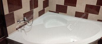 -A fürdőszoba sarokkáddal szerelt, a toalett külön helyiségben található.