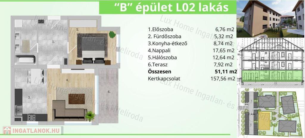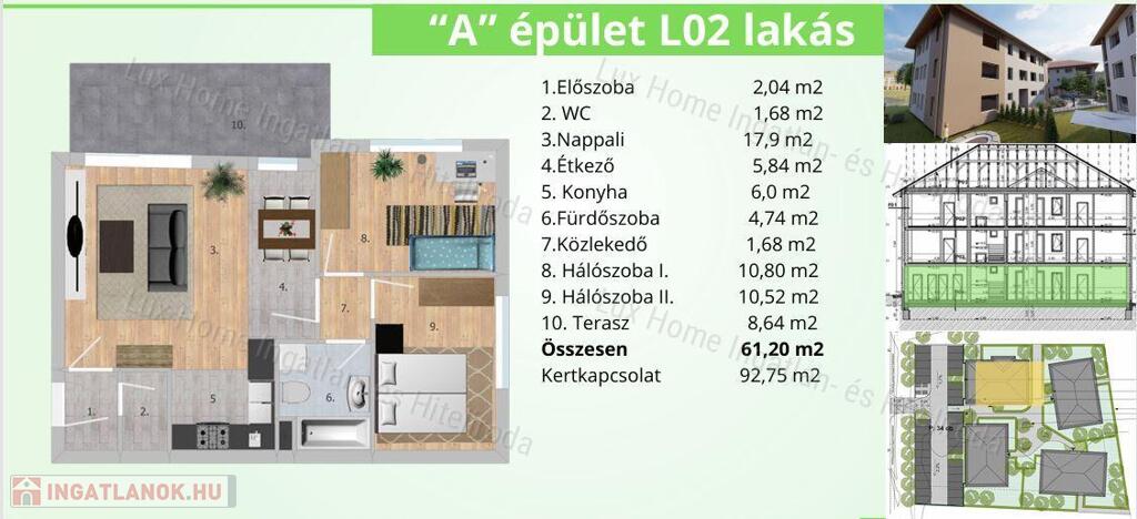 DL01: 51, 58 m2 + 180 m2 kert: 59.317.000 Ft
