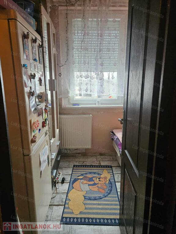 A szobákban laminált parketta van, az előszobában és a főzőfülkében járólap, a fürdőszobában linóleum található. A fürdő és a WC egy helyiségben kapott helyet. A lakás középső elhelyezkedésének köszönhetően meleg és kedvező fenntartású.