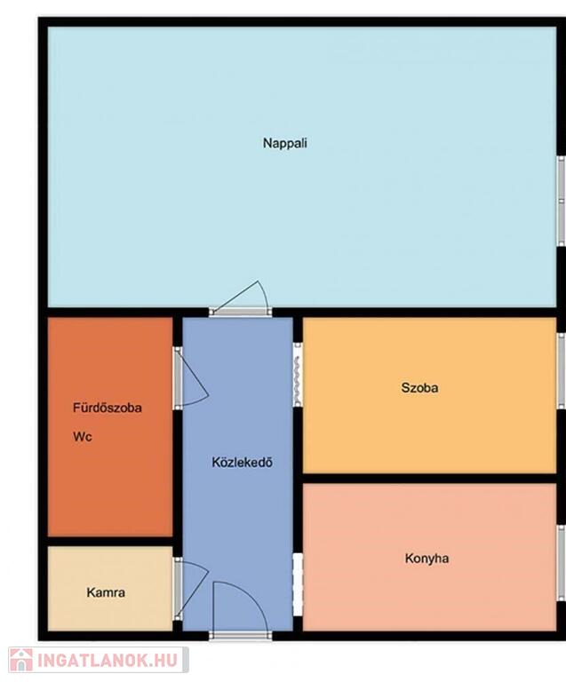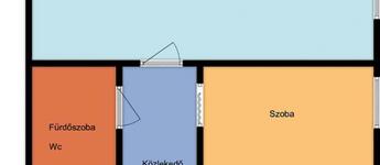 - 43 m2 alapterület.. 1,5 szoba / 23,5 m2, 6,6 m2/ konyha, fürdőszoba, wc, előtér, kamra..